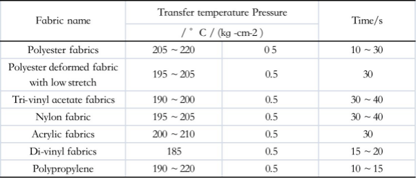 The purpose of the experiment was to test the applicability of rheological properties to the accommodation of fabrics. The ink is suitable for use on various offset printing machines, screen printing machines, digital printing machines, etc. It is made of environmentally friendly raw materials and has a bright colour. The basic composition of this brand of ink is shown in Table 1, the temperature required for the transfer is shown in Table 2 and the sunlight resistance is shown in Table 3.